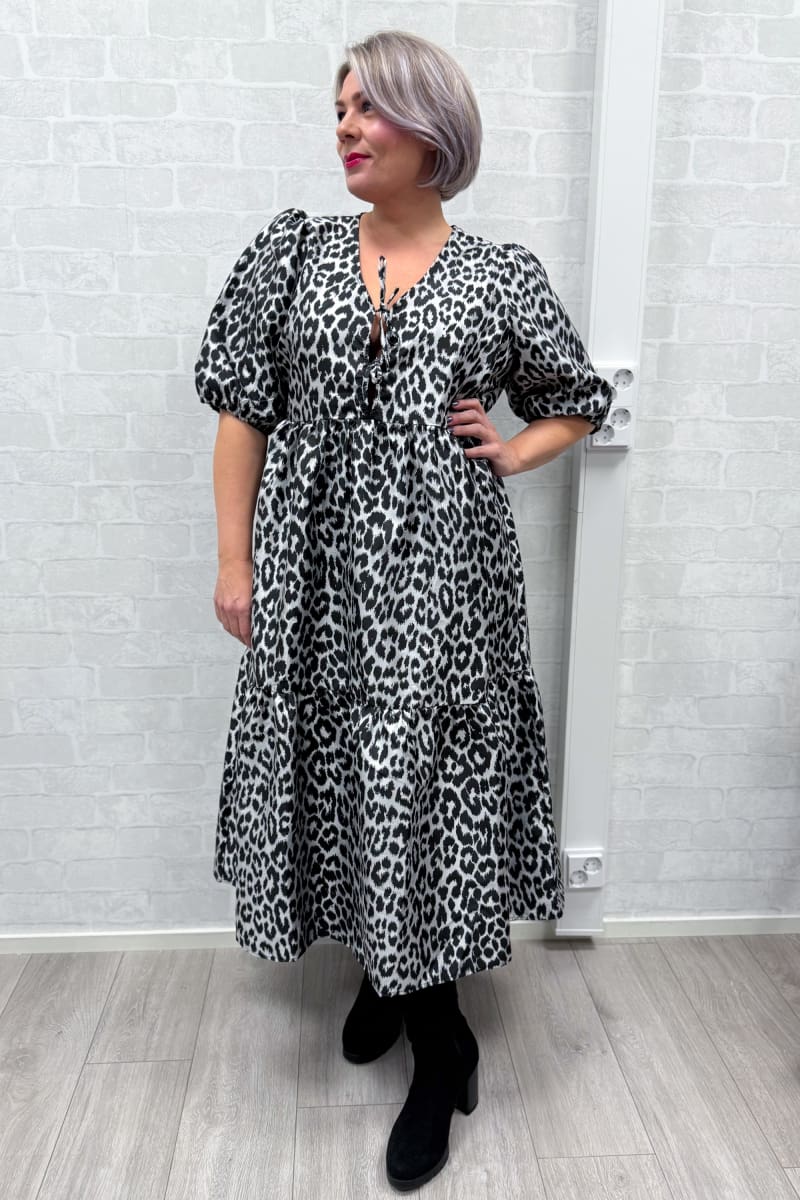 Tyylikäs mekko eläinkuviollisesta kankaasta