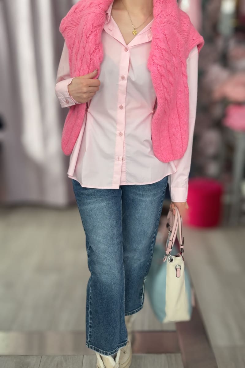 - Yläosa harmaa farkku ja alaosa keskisininen