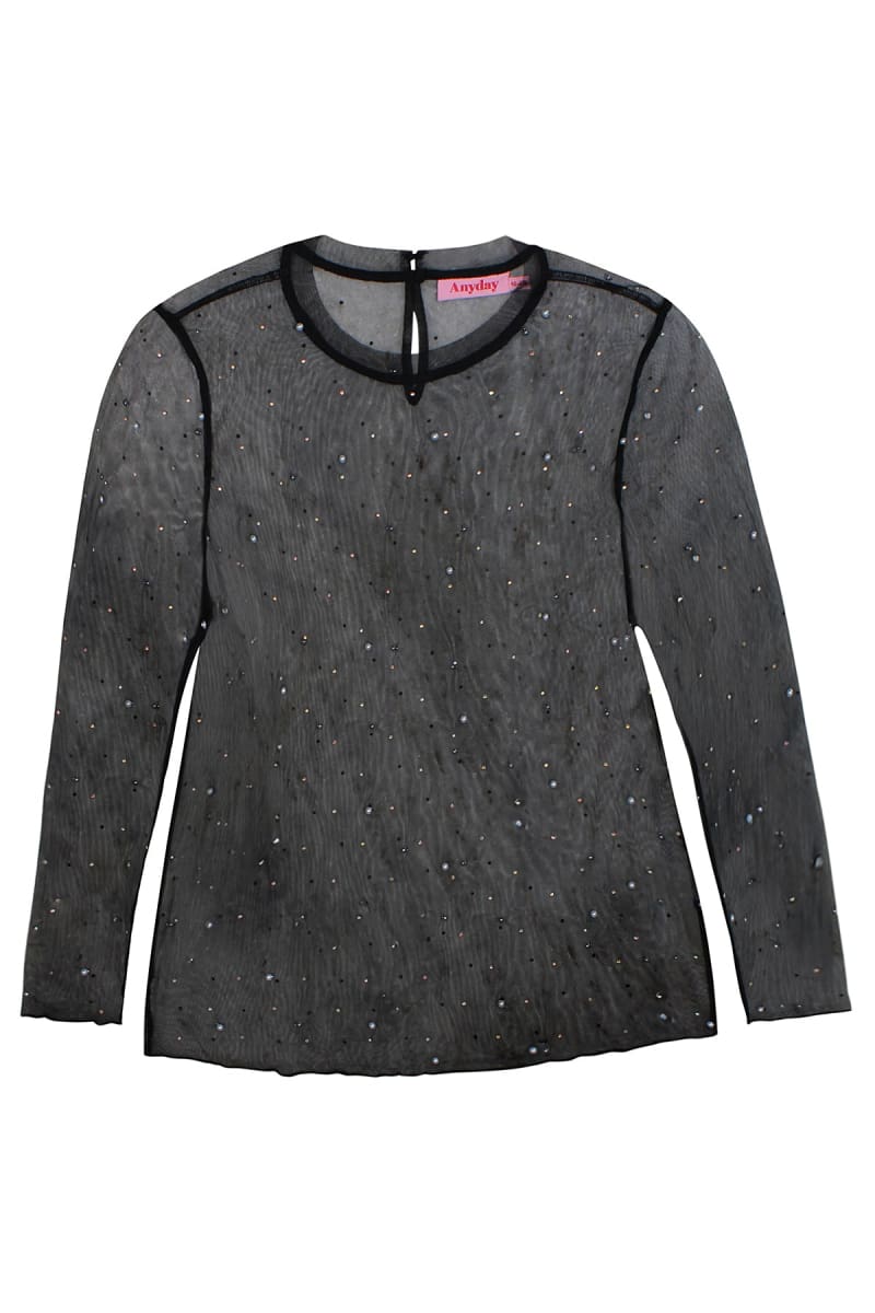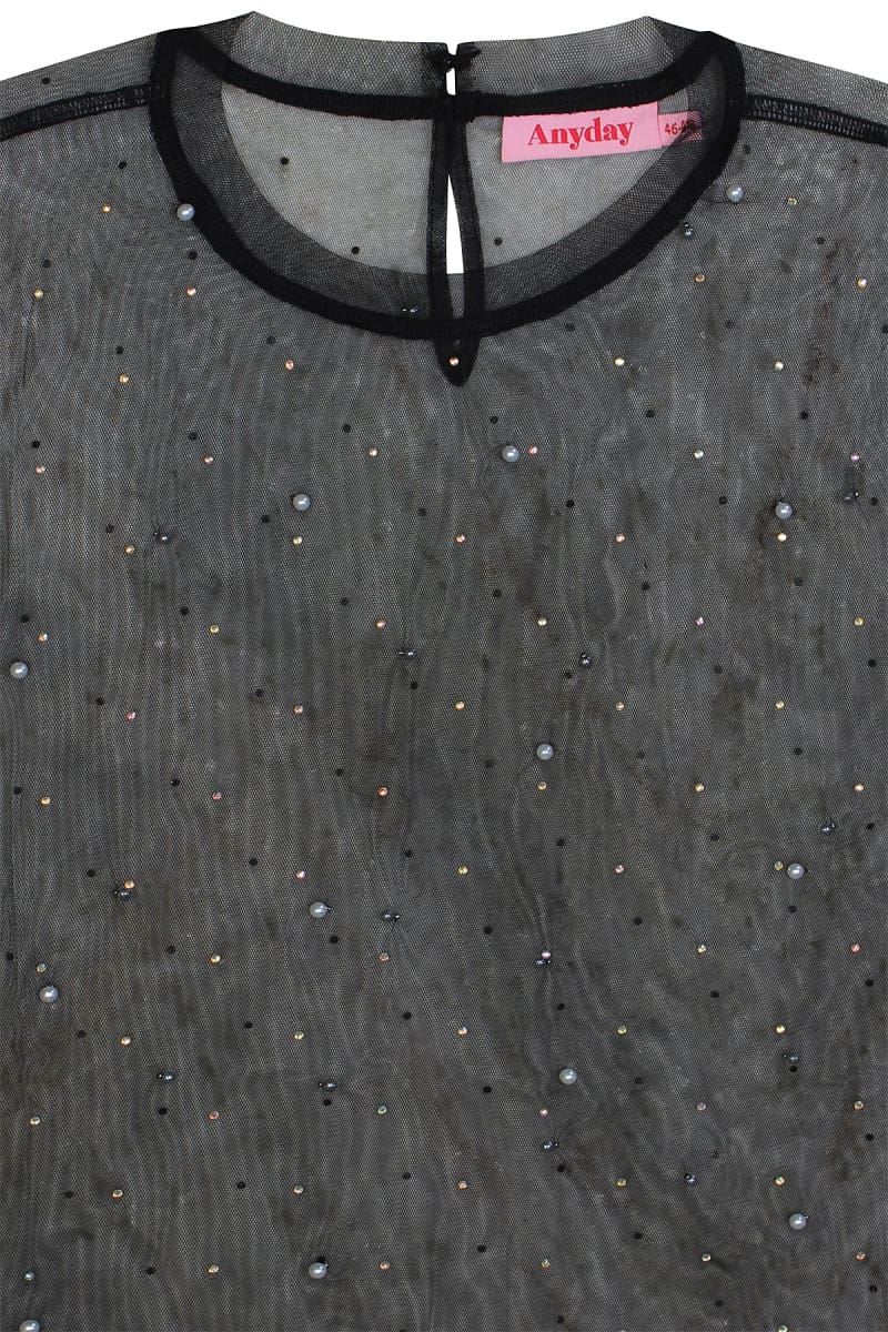Tyylikäs mesh-pusero, jossa helmiä