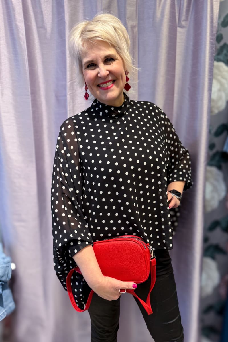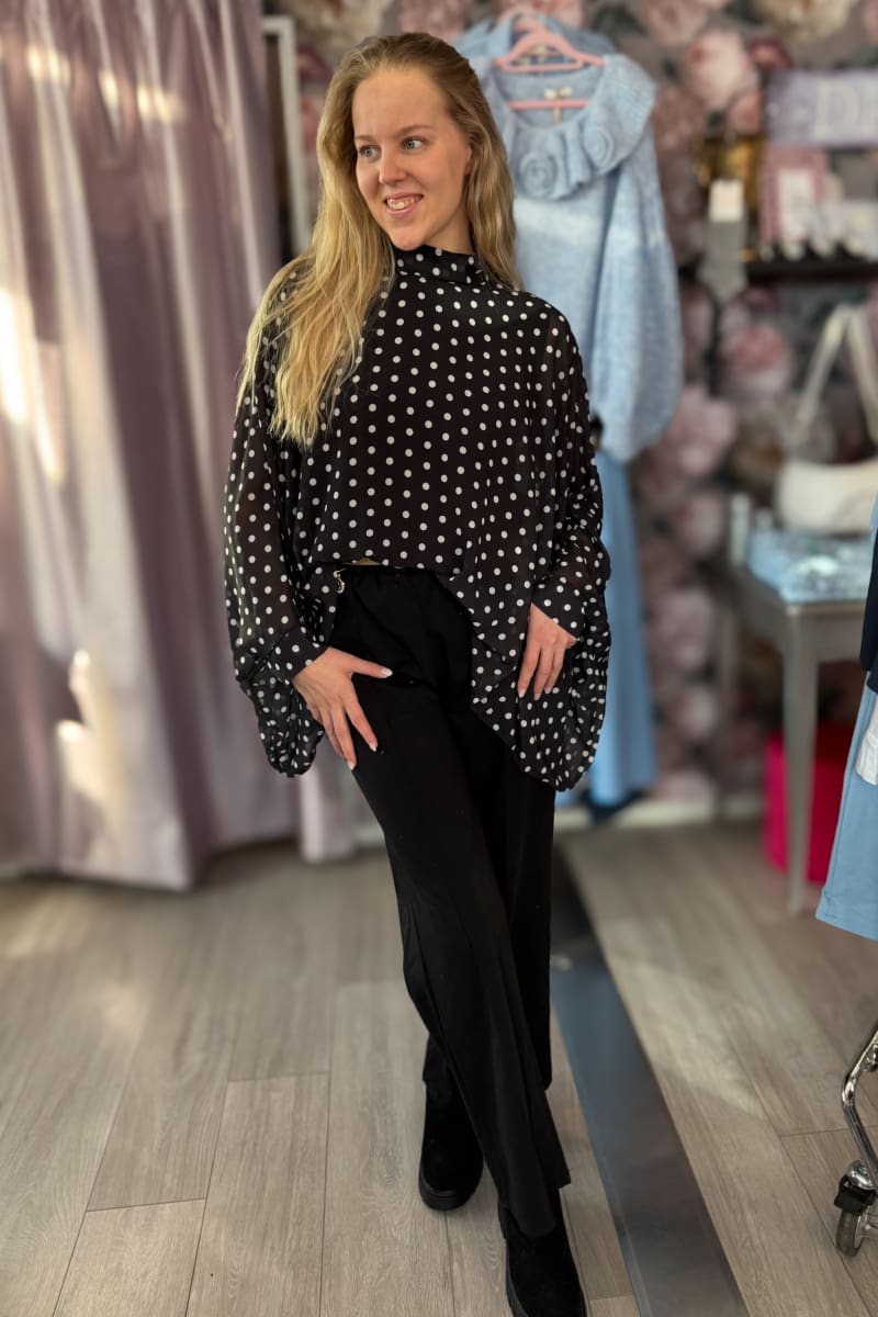 - Ihana pallokuvioinen pusero, jossa ponchomalliset hihat