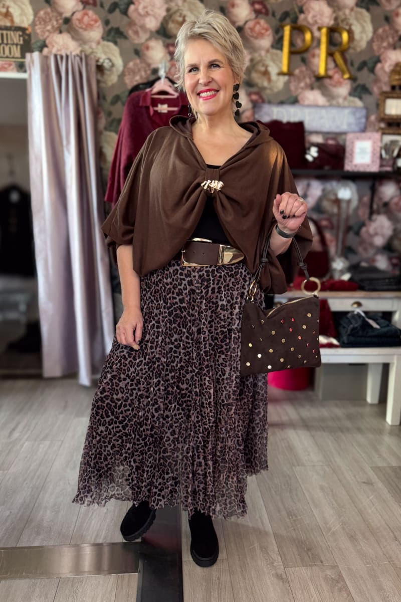 - Ihana pantterikuvioinen hame, jossa kolme kerrosta