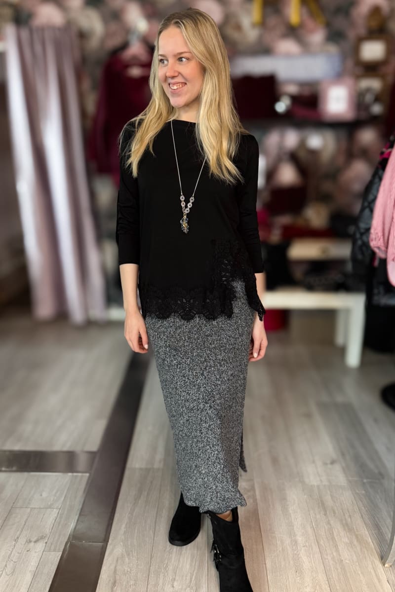 - Ihana joustava pusero, jossa pitsihalkio alareunassa
