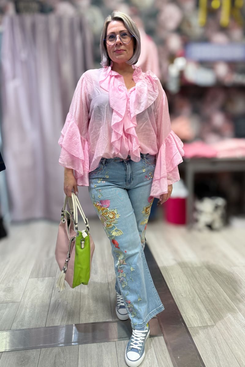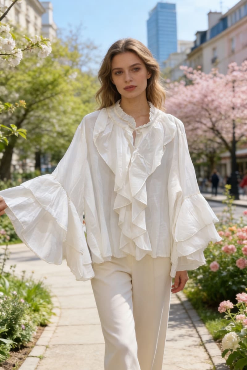 - Ihana paita röyhelöhihoilla ja -kauluksella