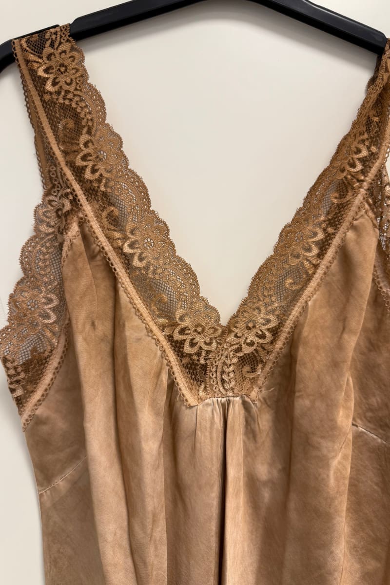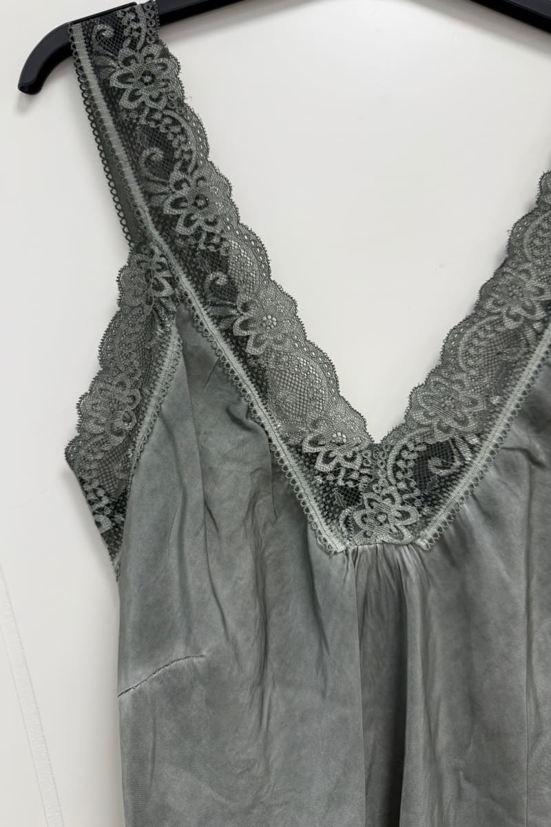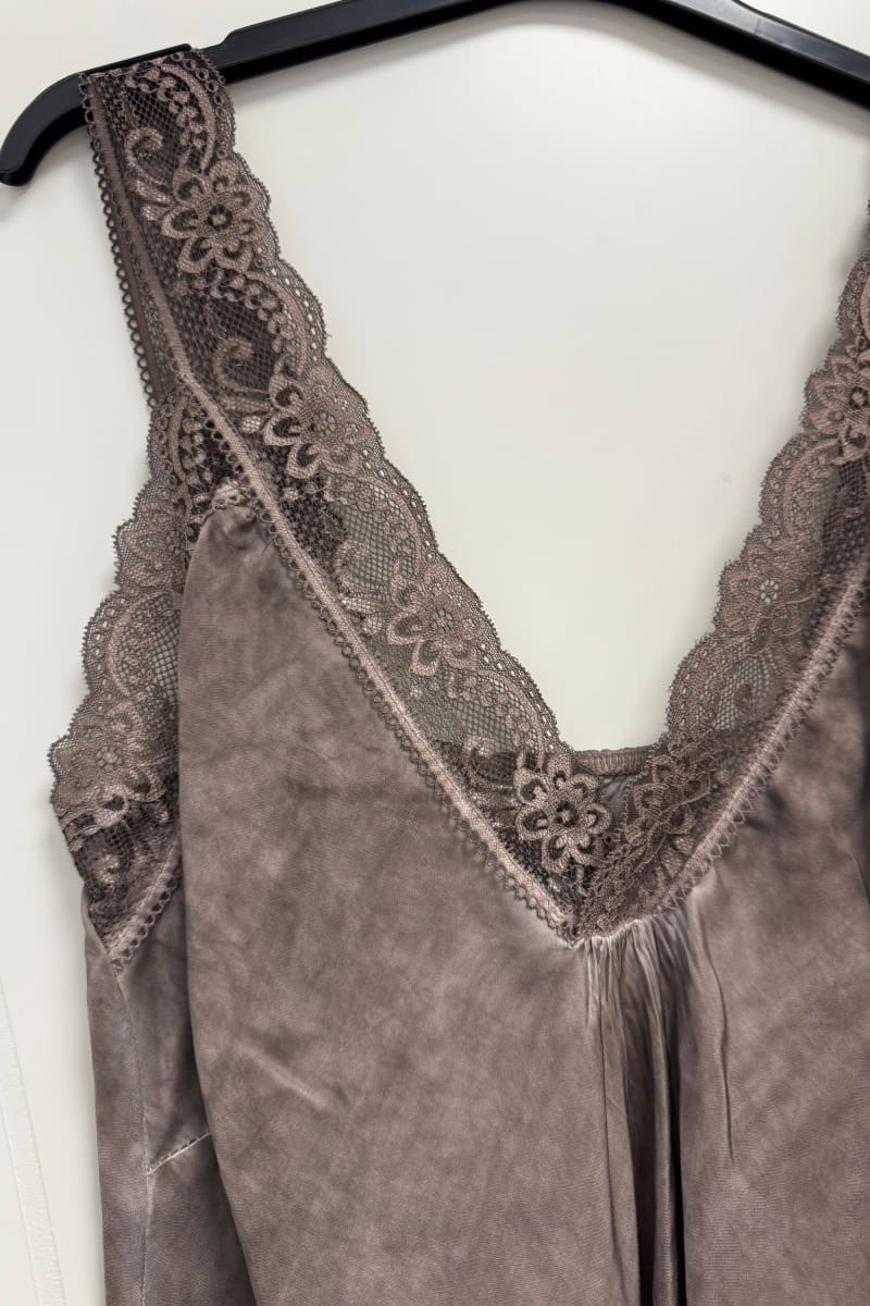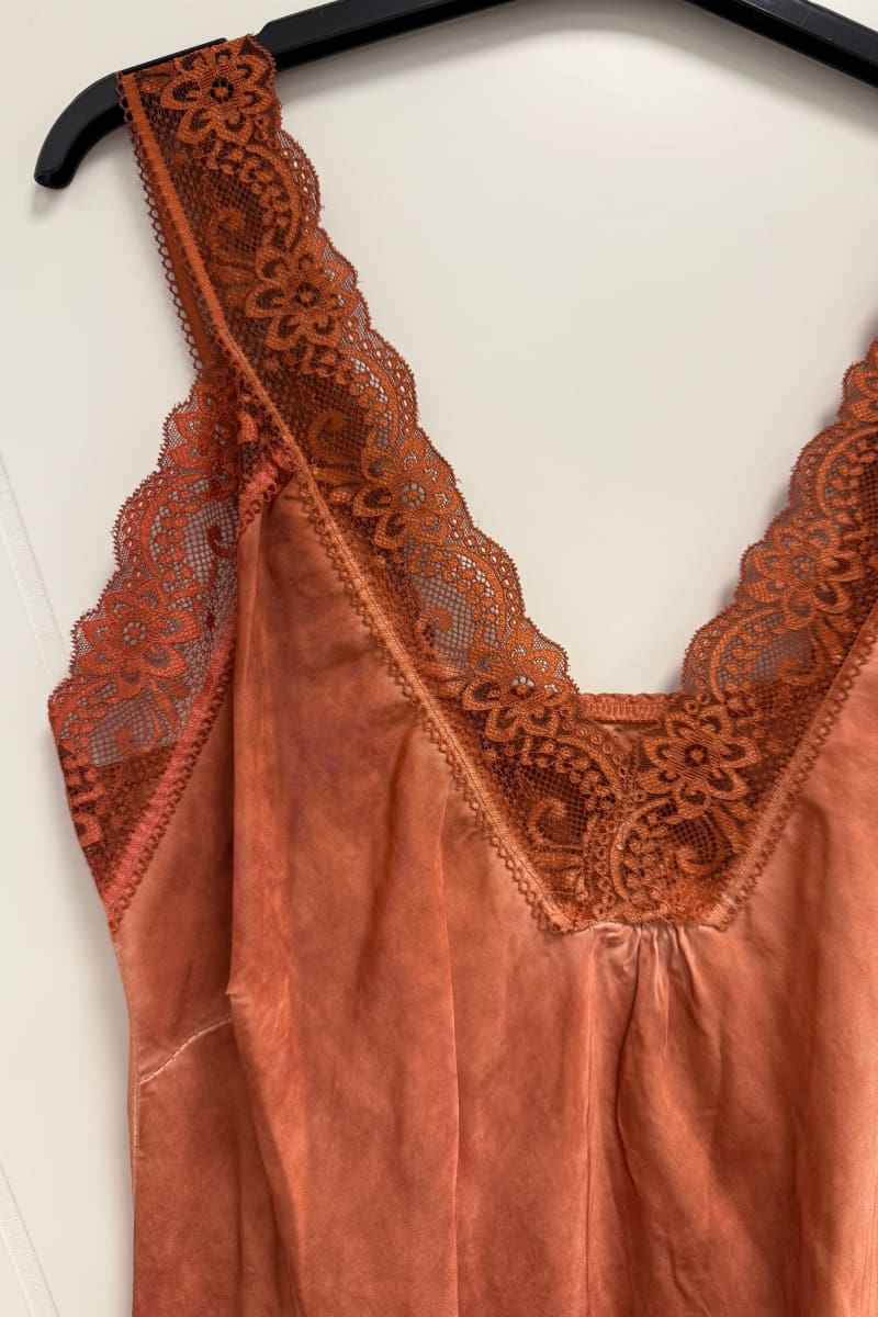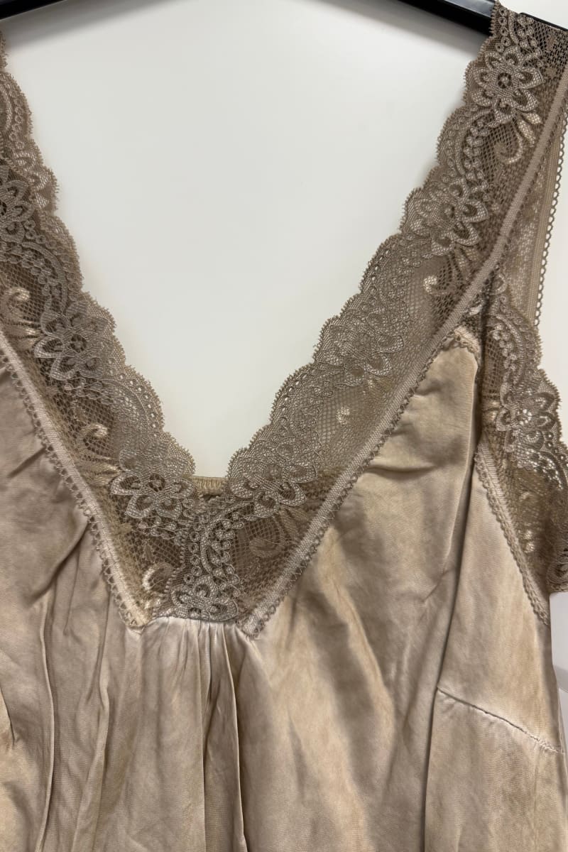 - Ihana silkkisen tuntoinen toppi, jossa pitsireuna