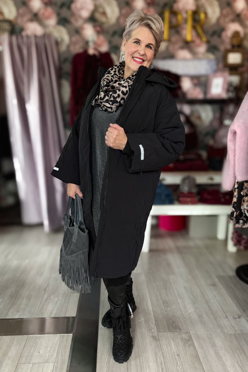 Upea musta hupullinen toppatakki!