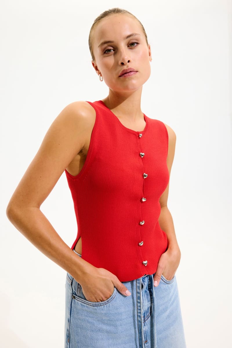 Tämä joustava toppi sydännapeilla sopii arkeen, treffeille, juhlaan ja kerrospukeutumiseen. Käytä sellaisenaan lämpimällä säällä tai bleiserin ja neuletakin alla viileämpinä päivinä. Se tuo asuun pehmeyttä ja romanttista tunnelmaa ilman liikaa yrittämistä.