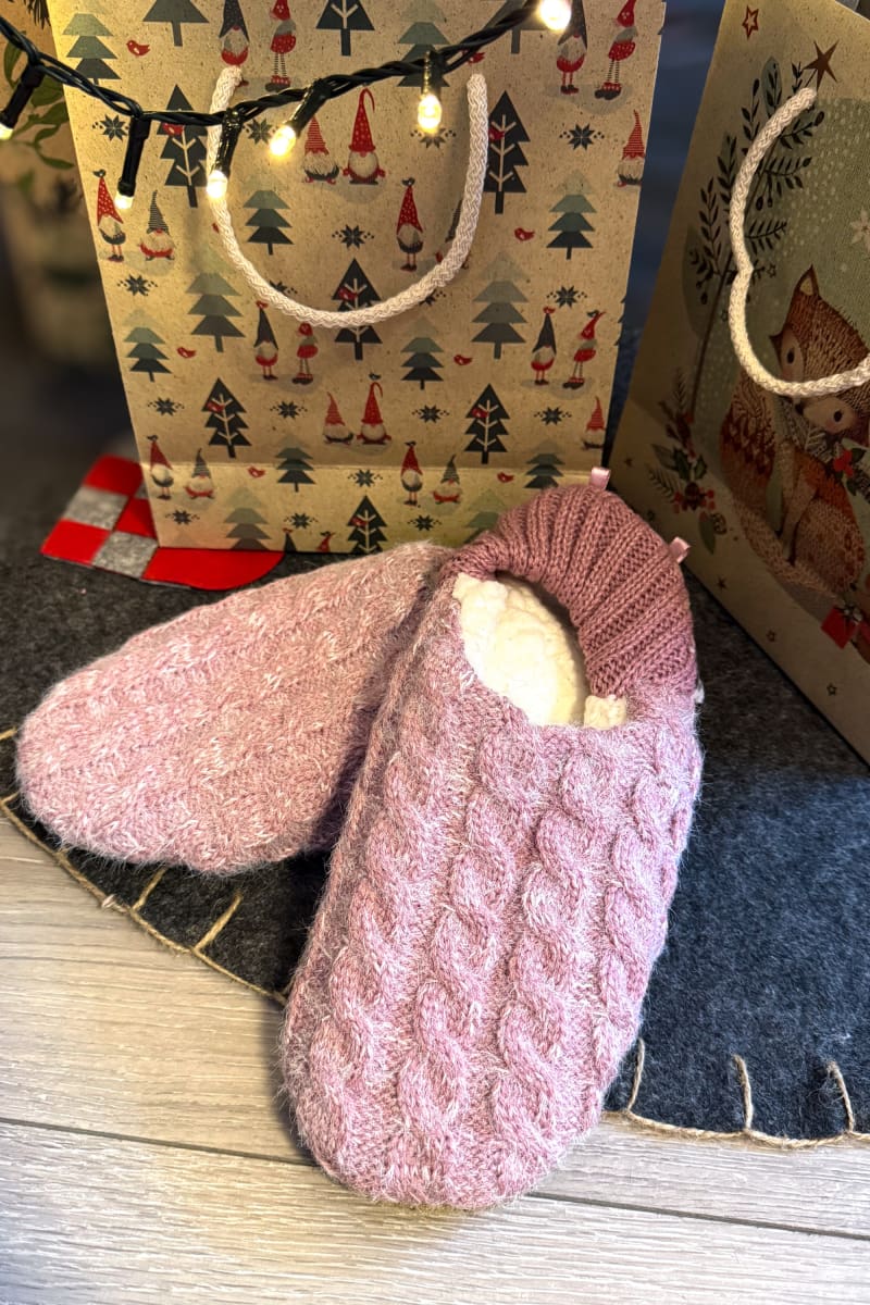 Nämä karvatossut tuovat koti-iltaan juuri sen ihanan pehmeän tunteen, jota jokainen kaipaa. Tossujen sisäpinta on miellyttävän pehmeää materiaalia, joka lämmittää jalkoja heti kun sujautat ne jalkaan. Päällinen on kauniisti neulottu, ja tossut näyttävät yhtä mukavilta kuin miltä ne tuntuvat.